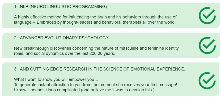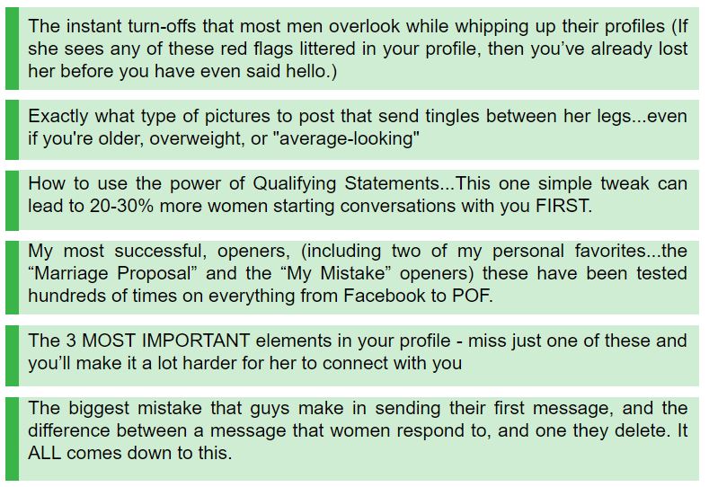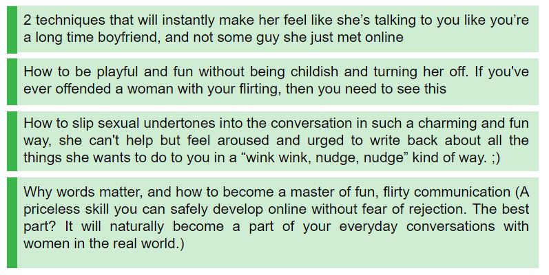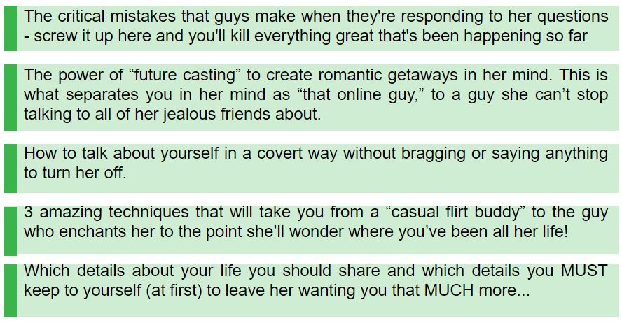 And the best part is...this will teach you how to customize and tailor messages for your personality, so you can start crafting the same kinds of messages that make women drop dead curious about you