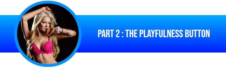 Press her playfulness button and get her flirting with you. This is where you set yourself up as a challenge - someone for her to chase and play with - and put YOU on the inside track - laps ahead of other men!